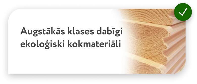 Mūsu uzņēmums specializējas uz ekoloģiski draudzīgo un ātri montējamo konstrukciju ražošanas. Mēs izmantojam augstākās kvalitātes kokmateriālus.